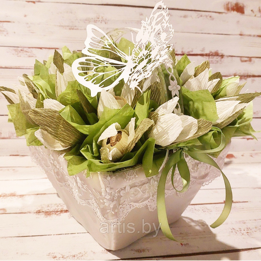 Букет из конфет "Подснежники" (31 конфета) . Это небольшой вкусный букетик из 29 искусственных цветочков в каждом из которых есть конфетка. Данный букетик не только вкусный, но и практичный. Конфетку можно достать и скушать, а нежный букетик останется на память.